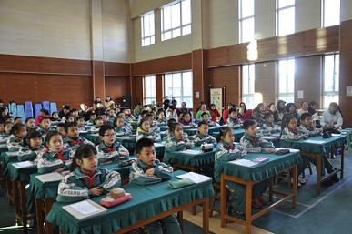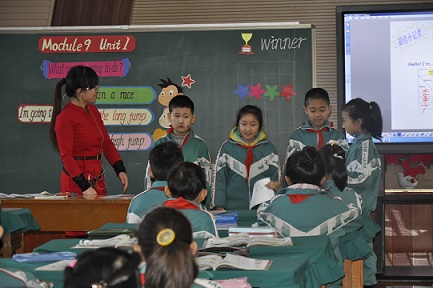 2015年11月25日上午,在自治区教育厅教研室大力支持和银川实验小学的组织安排下,本次国培计划的50名参训学员在外国语贝宝官网培训团队带领下到实验小学实地观摩了两节真实的课堂。做课教师:冷谨和宋艳萍老师在历年的区,市级的各种比赛中都获得了佳绩。她们分别讲了外研版(一起)五年级(上)和三年级(上)的课程。她们流利的口语表达,清晰的课堂指令,巧妙的活动设计,连贯的教学环节,娴熟的多媒体运用给我们的学员留下了深刻的印象。特别是生生活动中,两位教师有效运用自己制作的教学材料,结合音频和视频切实帮助学生掌握重点句型,并通过情景演练内化教学重点,课堂效果好,学生参与度高,知识掌握好。课下,国培学员围住两位教师询问教学模具的制作,音频视频的制作,教学活动的设计等问题,两位老师给予了悉心解答。本次观摩是国培课程理论和实践结合的有效践行,促进学员直观了解优质课堂的模式,帮助教师反思自己的教学的有效途径。