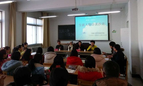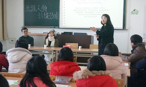 12月16日下午,外国语贝宝官网在本院311教室举行生涯人物访谈沙龙。随着我国教育事业的发展,越来越多高质量的大学毕业生涌入就业市场,即将毕业的大学生们因而压力倍增。本次生涯人物访谈沙龙特针对目前严峻的就业形势,给予同学们启发与指导。参加本次活动的有学生工作办公室郑轶老师、。往届毕业生张晗和田瑾以及来自贝宝官网各班级的同学们。