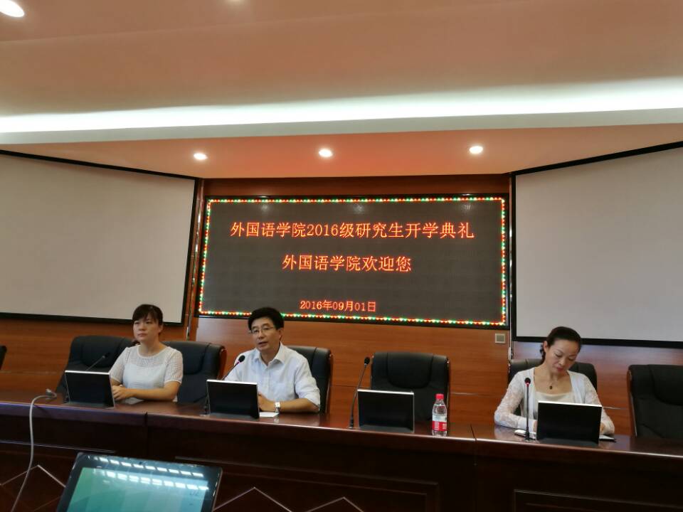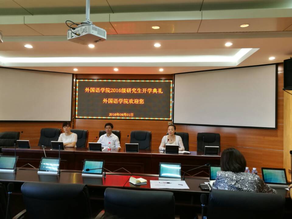 9月1日上午9点,外国语贝宝官网2016级研究生开学典礼在中日研究所401会议室举行。出席典礼的老师有外国语贝宝官网院长周震、副院长唐玲、院党委副书记余洁、研究生部主任胡笑瑛、教学秘书刘颖、杨文姣以及2016级全体研究生。本次开学典礼由副院长唐玲主持。