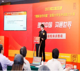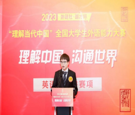全国参加“外研社·国才杯”全国大学生外语能力大赛参赛总人数达97.5万,英语组国赛于11月25日启动,晋级国赛第一阶段的选手共计2000名。外国语贝宝官网英语专业学生罗晨旭思维活跃,功底扎实,发挥稳定,从海选到国赛一路过关斩将,终获总决赛银奖,展现了外院学子的家国情怀、全球视野和拼搏精神。