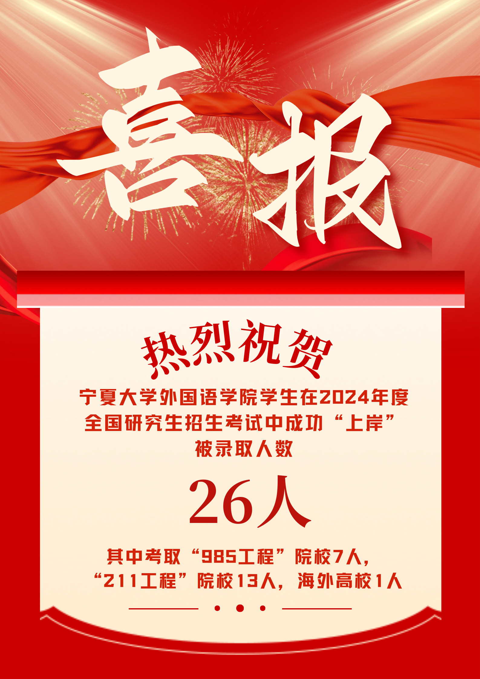 热烈祝贺贝宝官网 外国语贝宝官网2024届毕业生考研升学突破新高!人数、专业及院校排名均为新高!