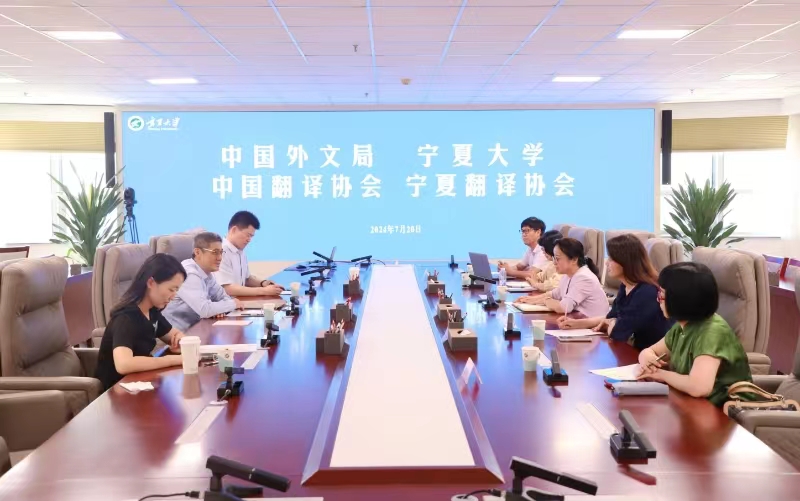 赵晓佳代表学校向中国外文局总编辑高岸明一行到访表示欢迎,并介绍了学校改革发展情况,她希望中国外文局、中国翻译协会能够在翻译人才培养、翻译师资队伍建设、翻译项目合作等多方面给予我校、以及宁夏翻译协会相关指导、支持和关注。