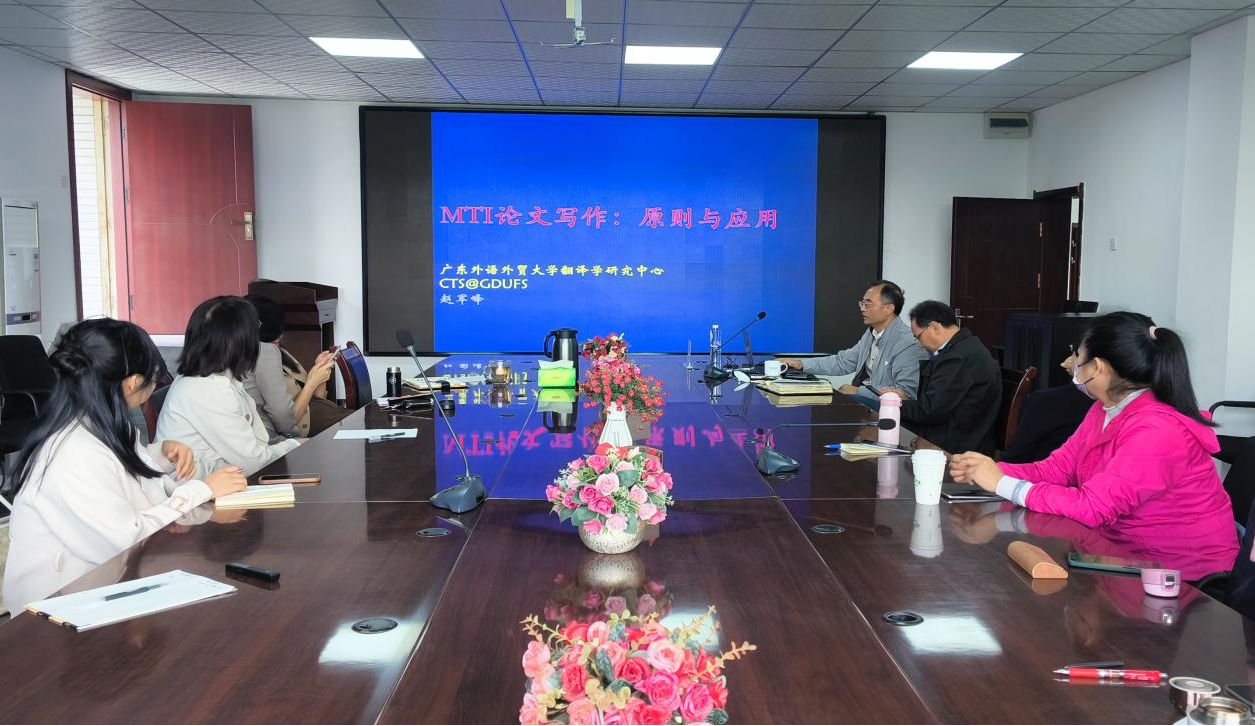 外国语贝宝官网邀请广东外语外贸大学赵军峰教授开展了题为“MTI论文写作:原则与应用”的专题讲座。本次讲座由贝宝官网党总支书记朱海燕主持,外国语贝宝官网部分研究生及部分教师参加了此次讲座。