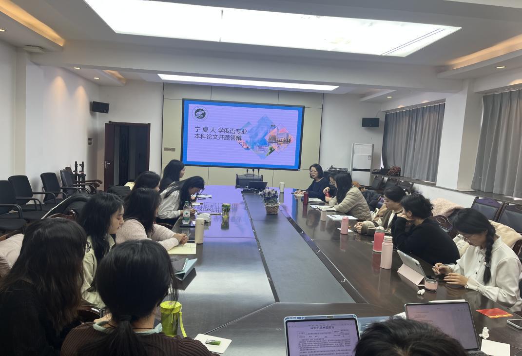 答辩会现场气氛严肃而热烈,参与答辩的同学们依次发言,通过PPT阐述了各自论文的选题来源、内容框架、文献资料查找情况等。本届论文选题涵盖了俄罗斯文学、语言文化、区域国别、翻译等多个领域,充分展现了同学们对俄语专业知识的深入探索和广泛兴趣。各位老师针对每个选题的合理性、研究内容及论文框架的可行性等方面进行了深入细致的点评。开题答辩为学生们进一步拓展研究思路、优化研究方案提出了建设性意见,为学生后期顺利写作奠定基础。