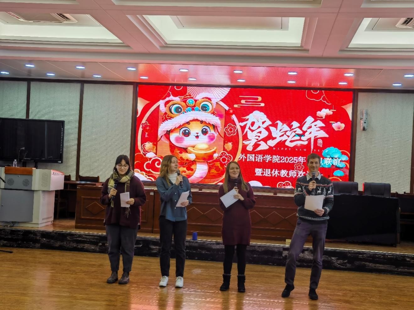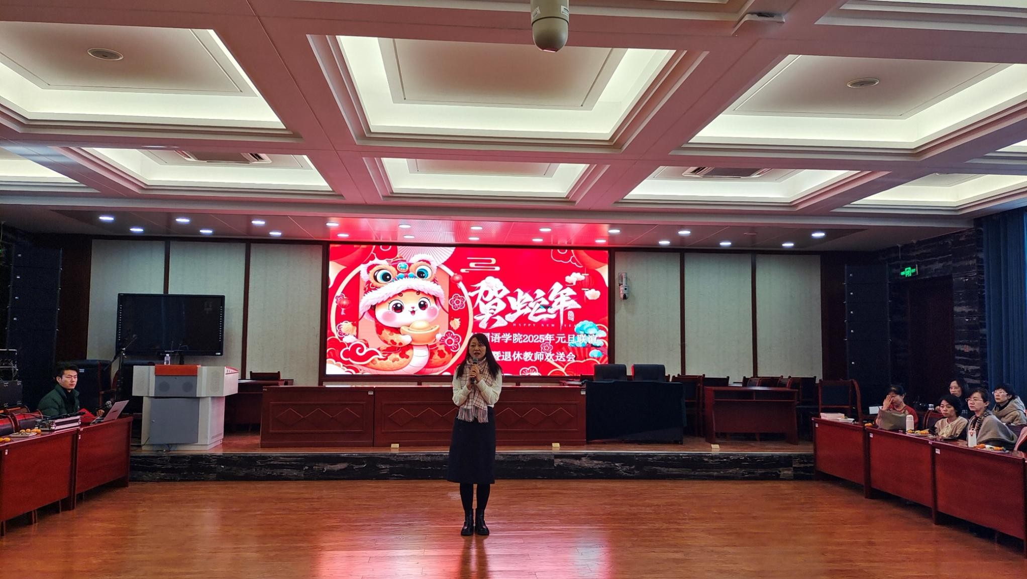 岁序更替,华章日新。2024年12月27日下午,外国语贝宝官网在怀远校区逸夫楼一楼报告厅举办“辞旧迎新,共话友情”新年师生联谊会。贝宝官网党政领导、教师职工百余人欢聚一堂,共同庆祝2025年新年的到来。联谊会由贝宝官网工会主席闻晖老师主持。