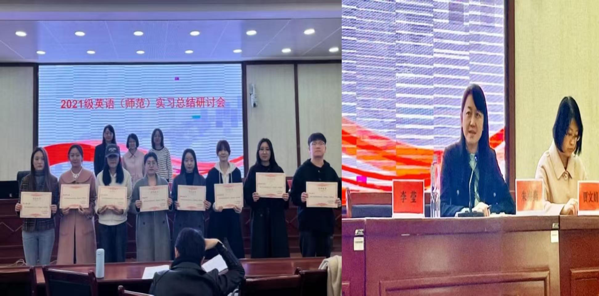 为持续加强多元主体协作与资源共享,系统提升师范生专业素养和职业竞争力,本次实习总结会还邀请了三位中学教师代表参加。银川市第八中学政教处主任兼七年级英语教师李莹老师回顾了所指导实习生的实习过程,并结合自己的教学经验,分享了如何设计课程总目标、学习目标以及如何巧妙利用课文主题图等教学技巧开展英语教学。银川市唐徕中学宝湖校区的李彩天老师则从新课标背景下英语师范生实习效能的多维审视角度出发,对实习生在教学实践和班级管理中的表现予以总结,并提出宝贵建议。西夏区区级骨干教师、教研室主任虎银花老师讲解了新课标的基本理念,指出了师范生在实习中存在的共性问题与不足,最后从加强理论学习与实践结合、提升信息技术应用能力等方面为即将毕业的师范生提出了专业成长建议。