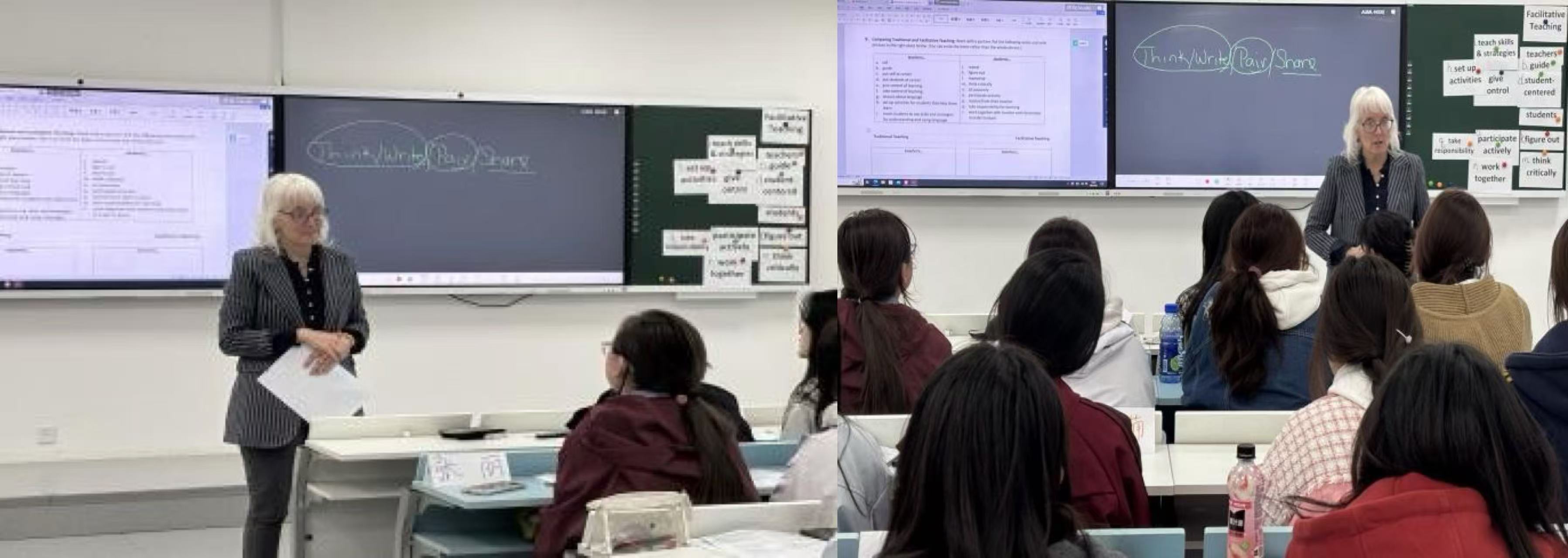 “卓越英语教师工作坊”活动是卓越教师培养计划的有机组成部分。贝宝官网邀请英语教学法领域专家Melissa Smith博士为工作坊负责人,面向2024级英语师范专业的53名学生,分四大主题,八大场次进行。在本期工作坊中,Melissa老师与同学们探讨了传统式(traditional)与促成式(facilitative)教学理论的异同;带领同学们审视自己对于英语教学的已有认知;并鼓励大家打破固有观念,从传统教育理念向促成式教育理念转变。
