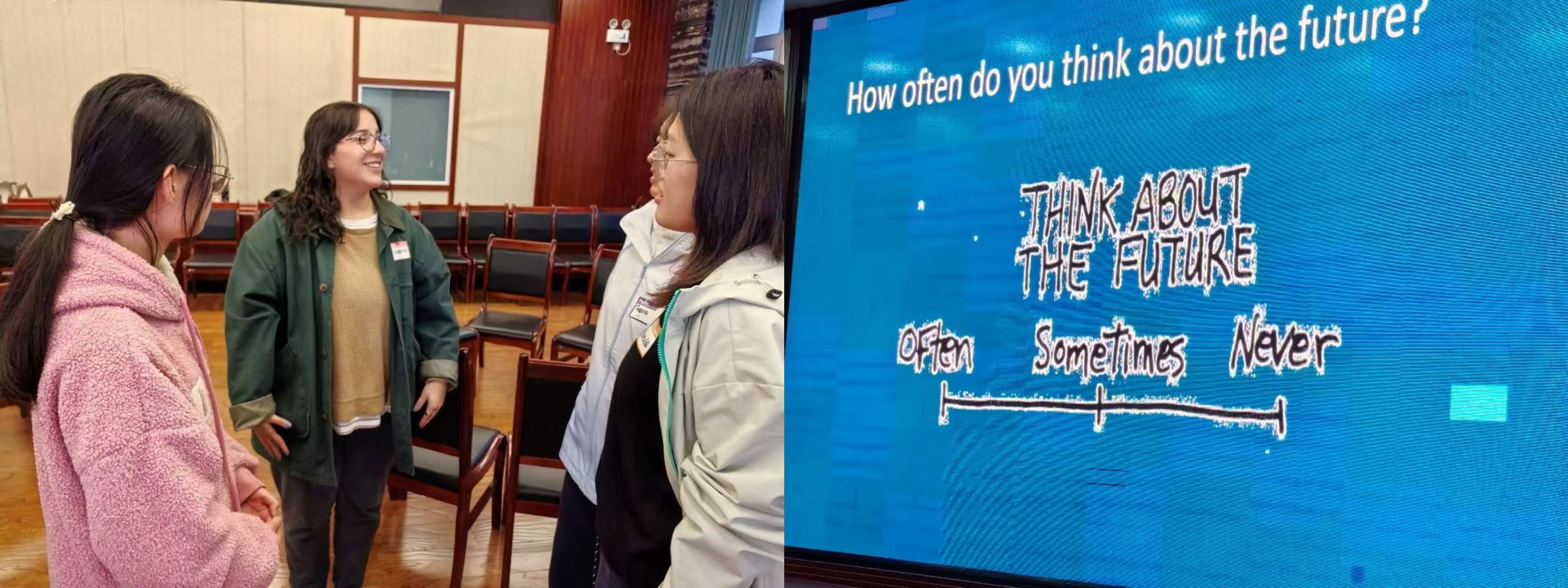 与首期活动不同,本次英语角特别新增“Whichdoyouprefer?”问答环节,引导参与者就“金钱与快乐”“稳定与冒险”“面对未来的态度”等话题展开讨论与辩论。这些问题不仅带来现场的欢声笑语,也激发了大家对自我探索的深层思考。活动最后,师生通过书面反馈交流、分享心得,将一晚的体验沉淀为真实可感的成长印记。