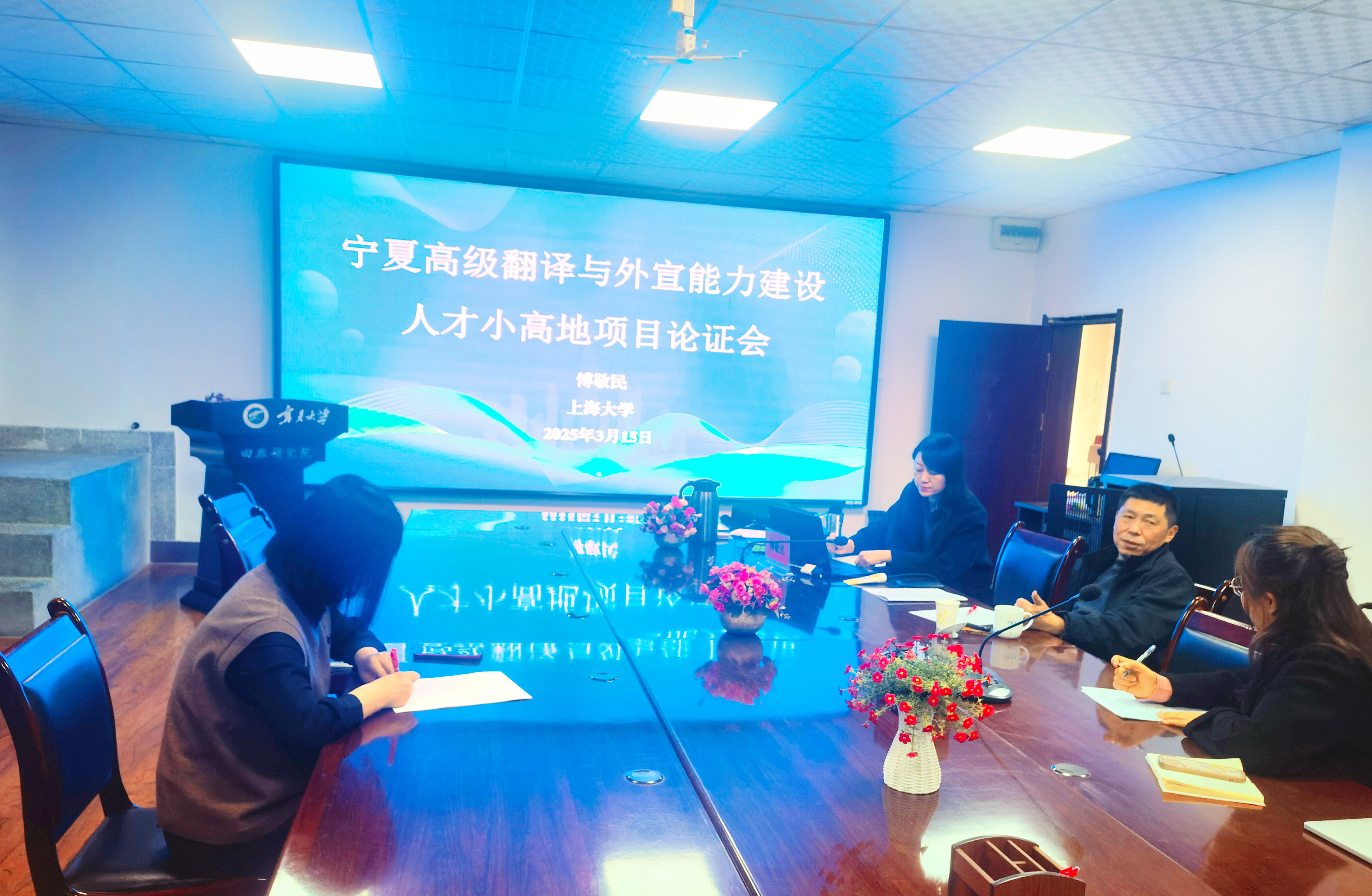 3月15日上午,外国语贝宝官网召开“宁夏高级翻译与外宣能力建设人才小高地项目论证会”,特邀国内应用翻译研究领域知名专家傅敬民教授现场指导。团队相关教师参加了论证会。论证会由人才小高地负责人朱海燕主持。