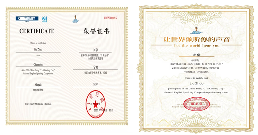 2025年1月至6月,第30届中国日报社“21世纪杯”全国英语演讲比赛初赛与省级复赛在线上顺利举行。作为我国英语演讲领域具有广泛影响力的高端赛事,本届“21世纪杯”自启动以来,便在我校掀起踊跃参与的热潮,吸引了来自各专业的众多学子积极报名。