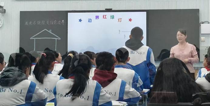 下午14:30开始,在宝湖校区3号楼四楼新录播教室,初一(5)班王云姣老师展示了一节生动活泼的主题班会课。班会以小短剧表演开始,引出“成长不设限,交往有边界”的主题。王老师引导学生通过“换位思考”体会他人感受,并列出“边界清单”。这种融情感与智慧为一体的班会形式让师范生对班级管理的温度和深度都有了深刻体悟。