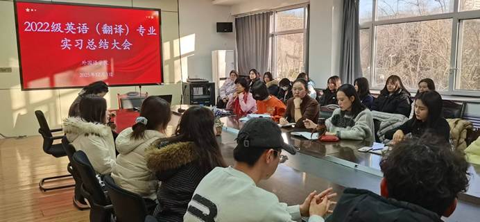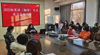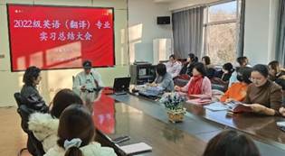 逸夫楼二楼会议室隆重举行。本次会议旨在总结本学期为期八周的翻译实习工作,展示学生的实践成果,分享实习经验与感悟。外国语学院相关领导、实习指导老师、学部代表及2022级翻译专业全体实习生参加了会议。