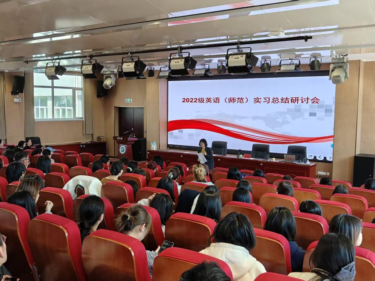 为全面总结2022级师范生实习成效,共享教学实践智慧,助力实习生明晰职业发展方向,3月11日,2022级英语(师范)实习总结研讨会在怀远楼二楼报告厅举行。宁夏育才中学骨干教师王莉、银川市阅海第二中学资深教师白莉应邀担任主讲嘉宾,与2022级、2023级师范生共话教育初心、共探教学路径。研讨会由外国语学院贾文娟副教授主持。