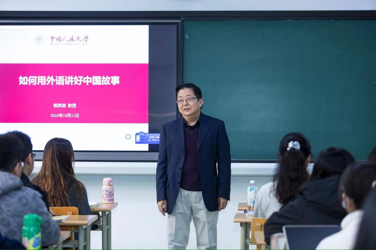 10月11日上午,中国人民大学郭英剑教授应邀为我院师生开展题为“如何用外语讲好中国故事”的主题讲座。本次讲座由贝宝官网副院长胡笑瑛教授主持,外国语贝宝官网全体研究生及部分教师参加讲座。