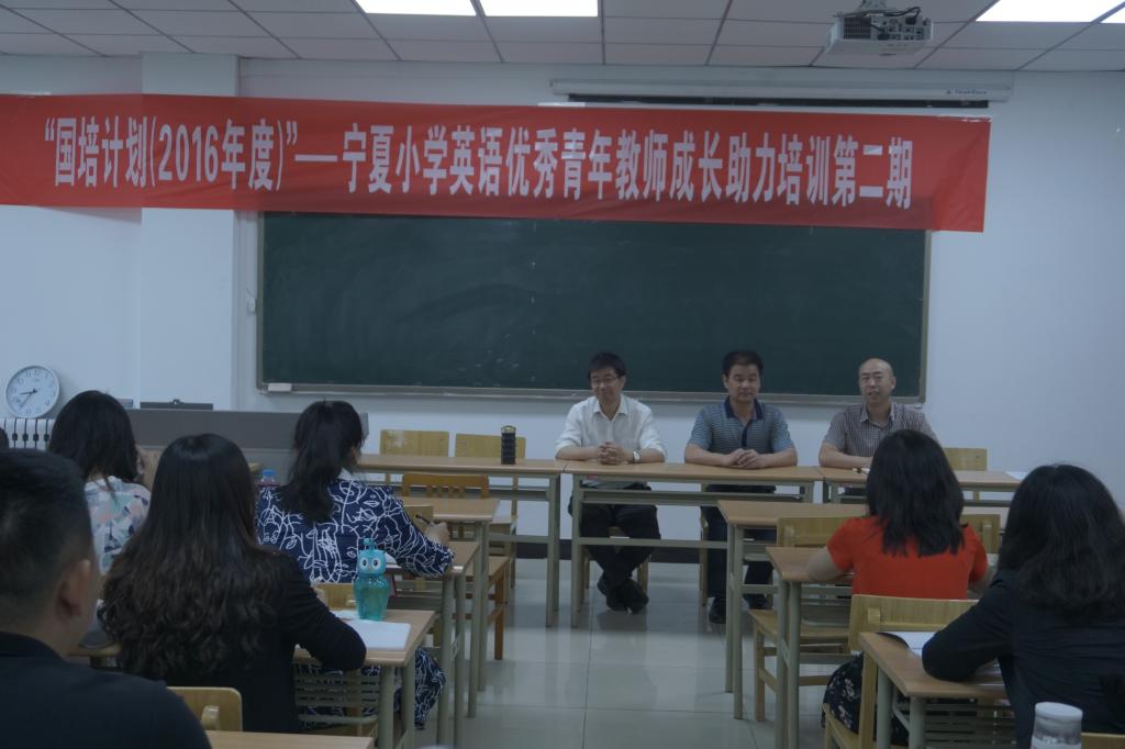 2017年5月21日-27日,外国语贝宝官网举办了“‘国培计划(2016年度)’第二期宁夏小学英语优秀青年教师成长助力研修”培训班。贝宝官网党委书记拜发奎,贝宝官网院长、项目首席专家周震教授出席开班仪式并做了讲话。开班式由原项目执行负责人李文军博士主持。