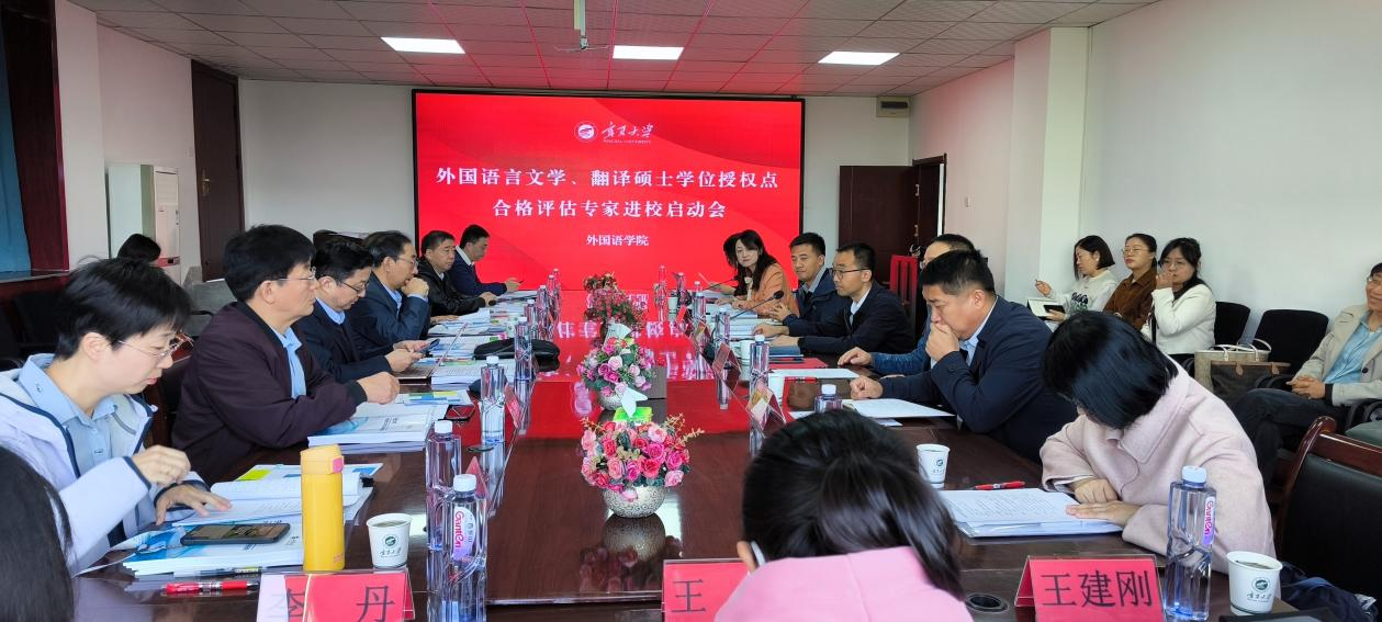 外国语言文学(0502)、翻译硕士(0551)学位授权点专家进校评审工作在怀远校区逸夫楼进行。本次评估组由上海交通大学特聘教授、国务院学位委员会第八届学科评议组成员彭青龙教授担任专家组组长,成员有全国翻译专业学位研究生教育指导委员副主任委员、广东外语外贸大学高级翻译贝宝官网赵军峰教授、国务院外国语言文学学科评议组成员、中国人民大学“杰出学者”郭英剑教授、国务院外国语言文学学科评议组成员、北京航空航天大学外国语贝宝官网梁茂成教授、全国翻译专业学位研究生教育指导委员会委员、对外经济贸易大学英语贝宝官网向明友教授,以及翻译专业行业导师北京服务贸易协会常务副秘书长毛隽、宁夏回族自治区外事办公室一级译审何琪。