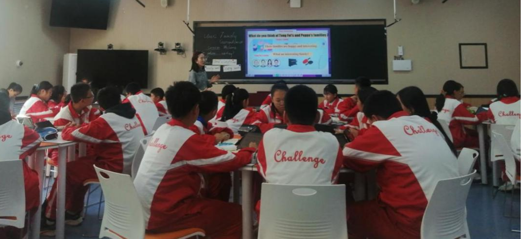 在听后环节,杨老师带领学生观看视频,模仿跟读,口头表达,所有环节步步推进,最终达成交际策略的培养目标。在本堂课的最后布置了家庭作业,要求学生录制视频,介绍自己的家庭成员。